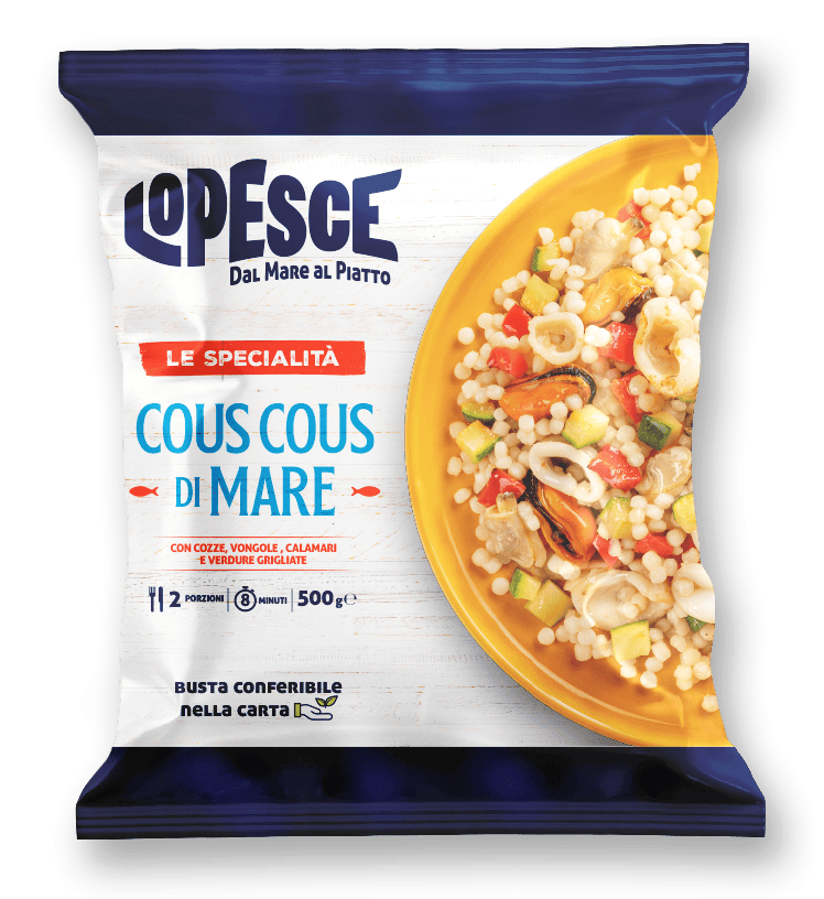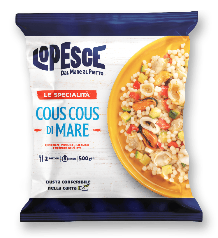 Abbiamo unito la leggerezza del cous cous con zucchine e peperoni grigliati, arricchendolo con i sapori autentici del nostro mare: cozze, vongole e calamari.