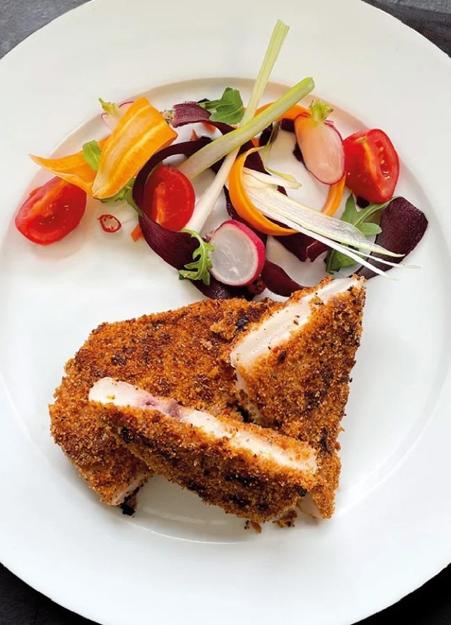 The coating enhances the firmness of the fillet without overpowering its bold taste, offering a perfect balance of elegance and simplicity — ideal for a special dinner.